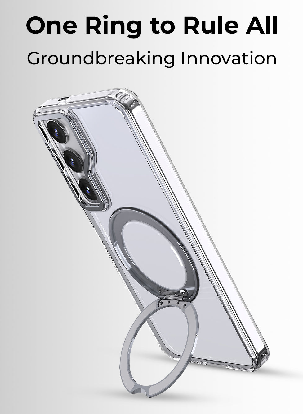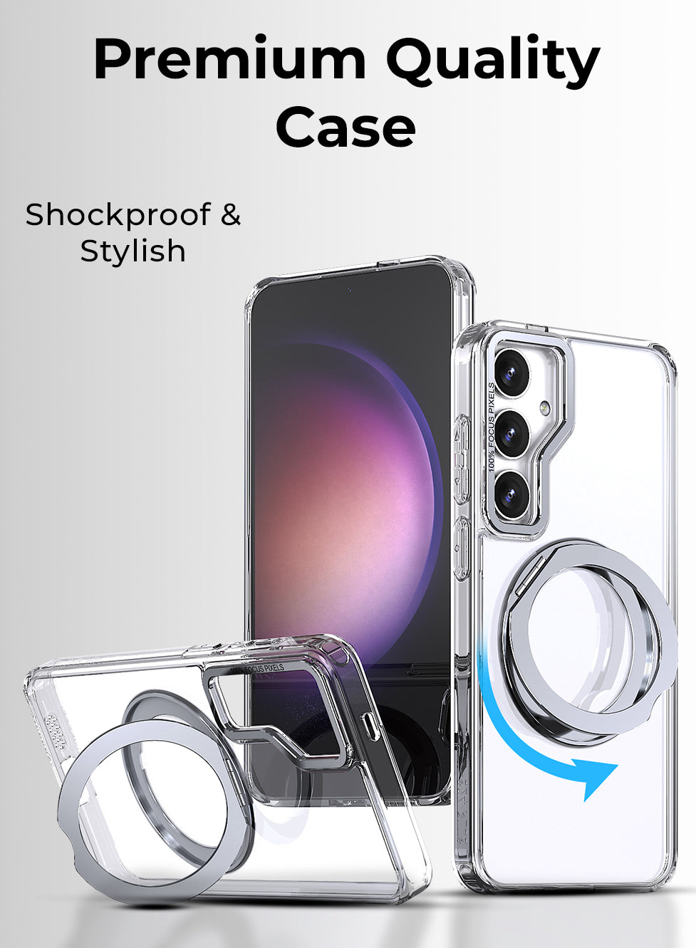 احمِ هاتفك Samsung Galaxy S25 FE واعرضه باستخدام هذه الحافظة الشفافة المغناطيسية 360 درجة - تتميز بحلقة دوارة وحماية ضد الصدمات وتصميم ملائم تمامًا.