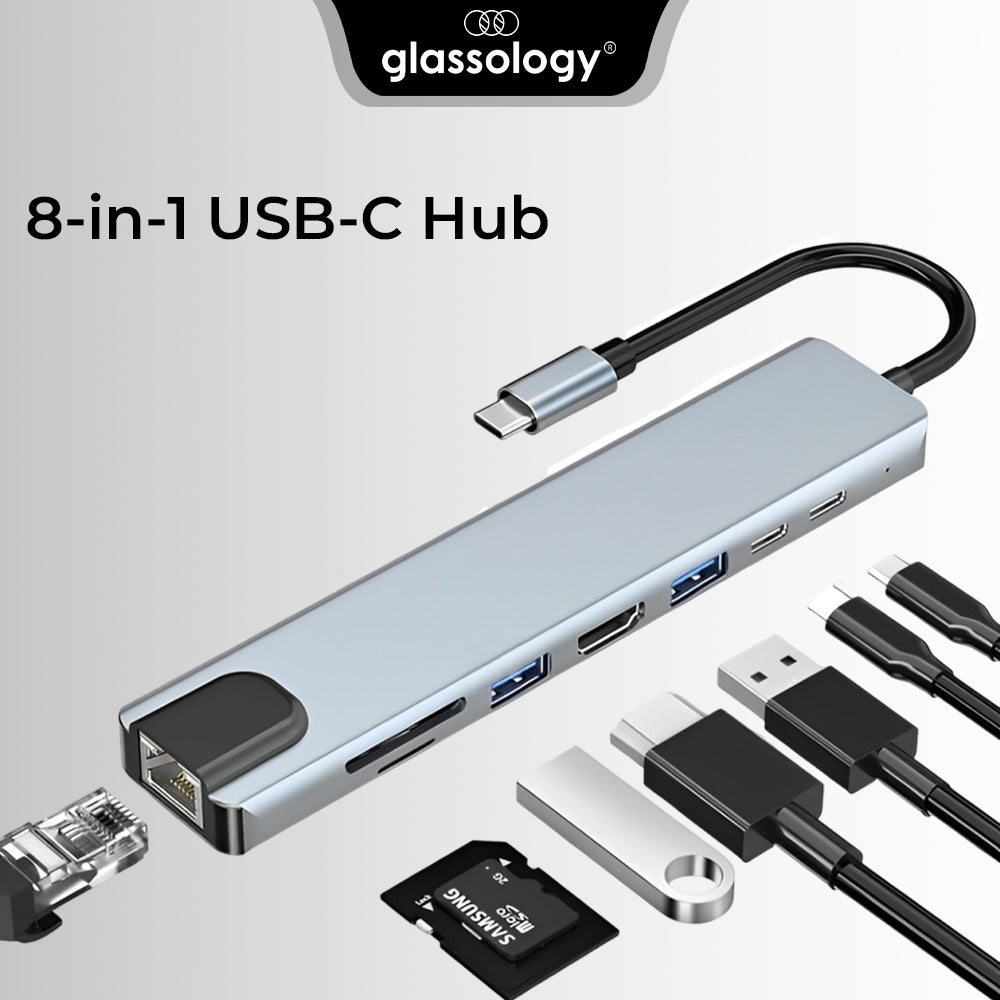 Glassology GH8G 8-in-1 USB-C Hub for laptops, tablets & smartphones – 4K HDMI, dual Type-C, Ethernet, SD/TF card slots, audio jack & fast data transfer UAE. Featuring dual USB-C ports, 4K HDMI output, Ethernet, SD/TF card slots, audio jack, and fast USB 3.0 data transfer, this compact hub keeps your laptop, tablet, or smartphone fully connected. Durable, portable, and plug-and-play, it’s the ultimate companion for work, gaming, and travel in the UAE.