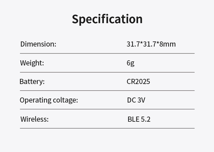 Battery Life: 8 - 10 Months (Replaceable CR2032)