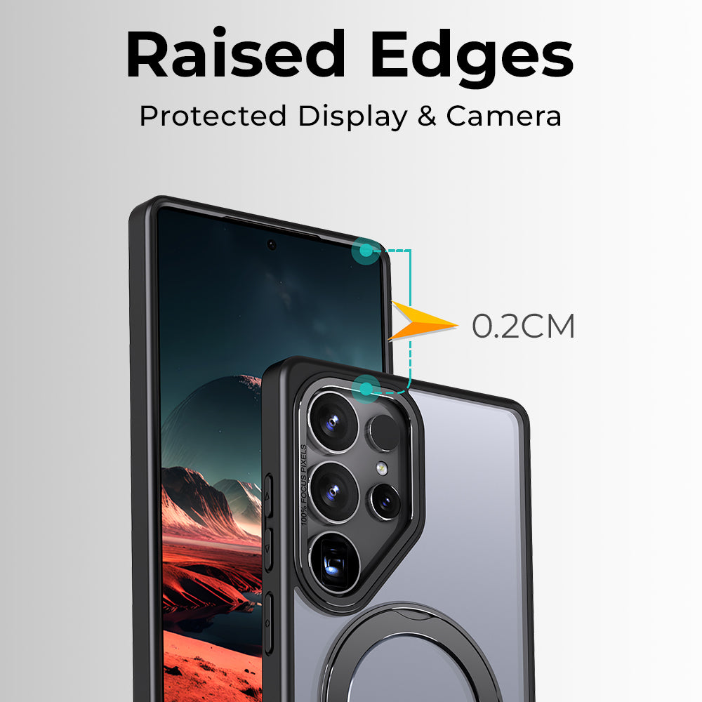 Samsung Galaxy S25 Ultra Magnetic Protective Slim Case 360° Ring Stand - (Black)