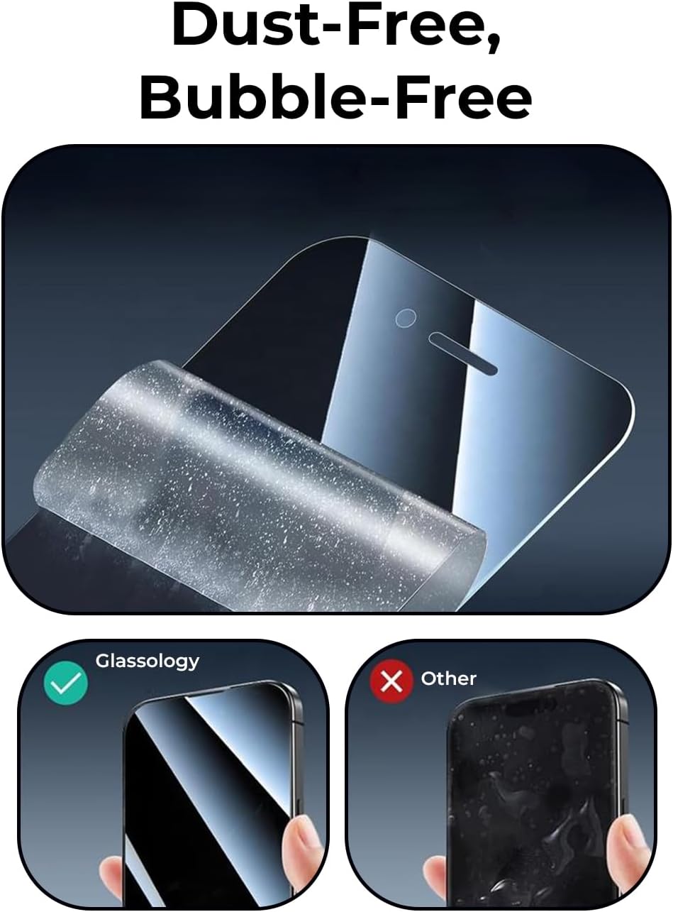 Dust-Free & Bubble-Free Installation: Enjoy a smooth, hassle-free installation with zero dust or bubbles. The advanced adhesive ensures perfect alignment and crystal-clear clarity — giving your iPhone a spotless, premium finish every time.