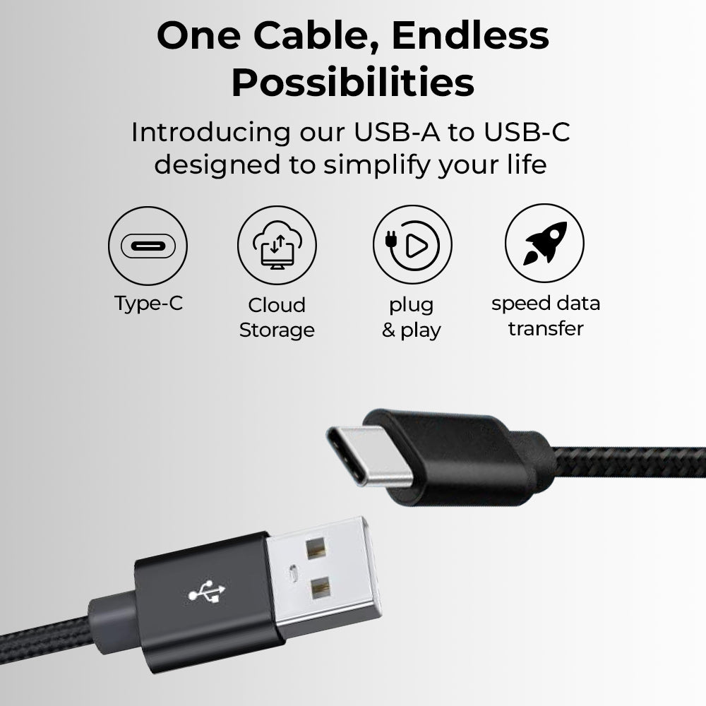 This 1.2-meter USB A to C cable supports 3A high-current fast charging, ensuring efficient power delivery for compatible devices. Constructed with pure copper wiring and reinforced with a durable PVC and nylon braided exterior, it offers enhanced longevity and resistance to wear. With a data transfer speed of up to 480Mbps, it facilitates quick and reliable file transfers. Its black finish combines functionality with a sleek, professional look. Ideal for users seeking a robust and high-performance charging and data cable.